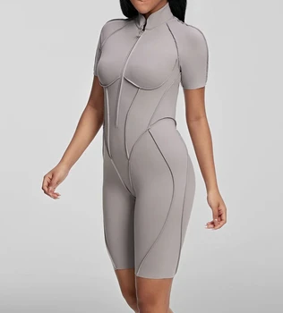 Engaged, elevated, and ready to glow—the “Claire” Half Zip Up Activewear Romper is fit for the bride who does it all. Crafted from stretchy nylon fabric, this romper features a mock neck with a front half-zip up design. The romper hugs your body at all the right places as it shapes short sleeves before ending in fitted short legs. Turn around to reveal a sexy back cutout.